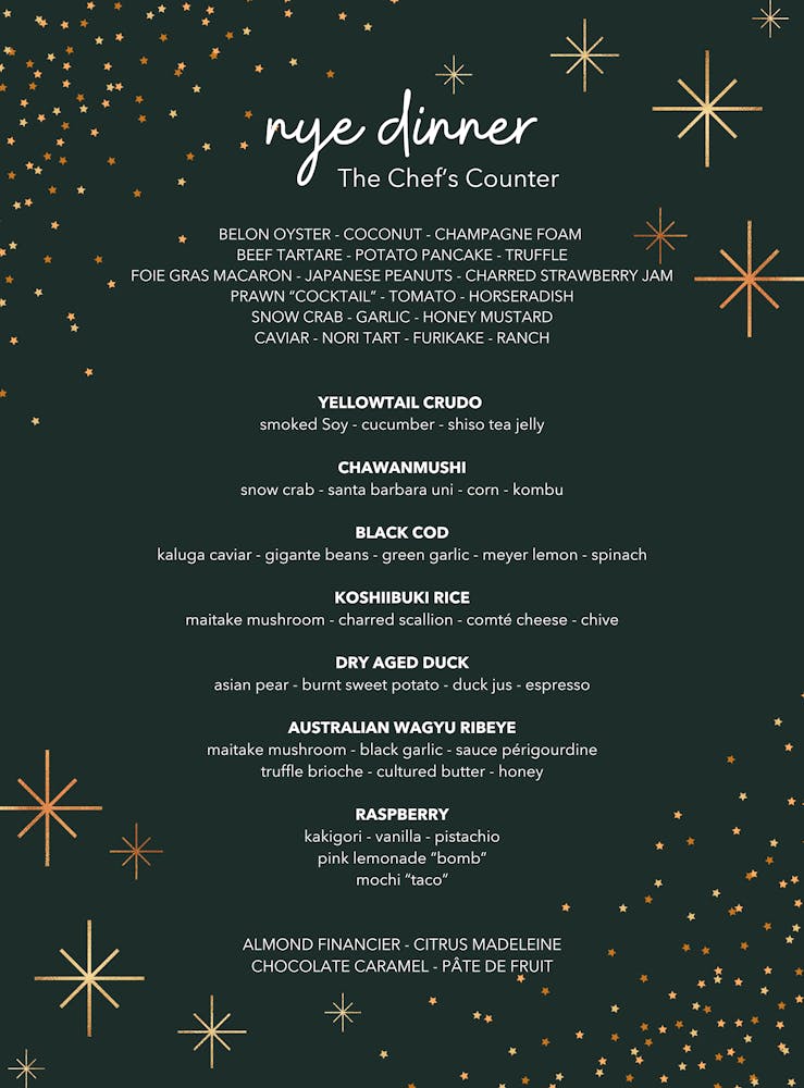 Celebrate New Year’s Eve at MAASS with two exceptional dining experiences to choose from. Whether you prefer the lively atmosphere of our Main Dining Room or the intimate setting of our Chef’s Counter, each offers a night of indulgence, crafted by Chef Ryan Ratino, to welcome the New Year in unforgettable style. Secure your spot now for an evening of culinary excellence and celebration.